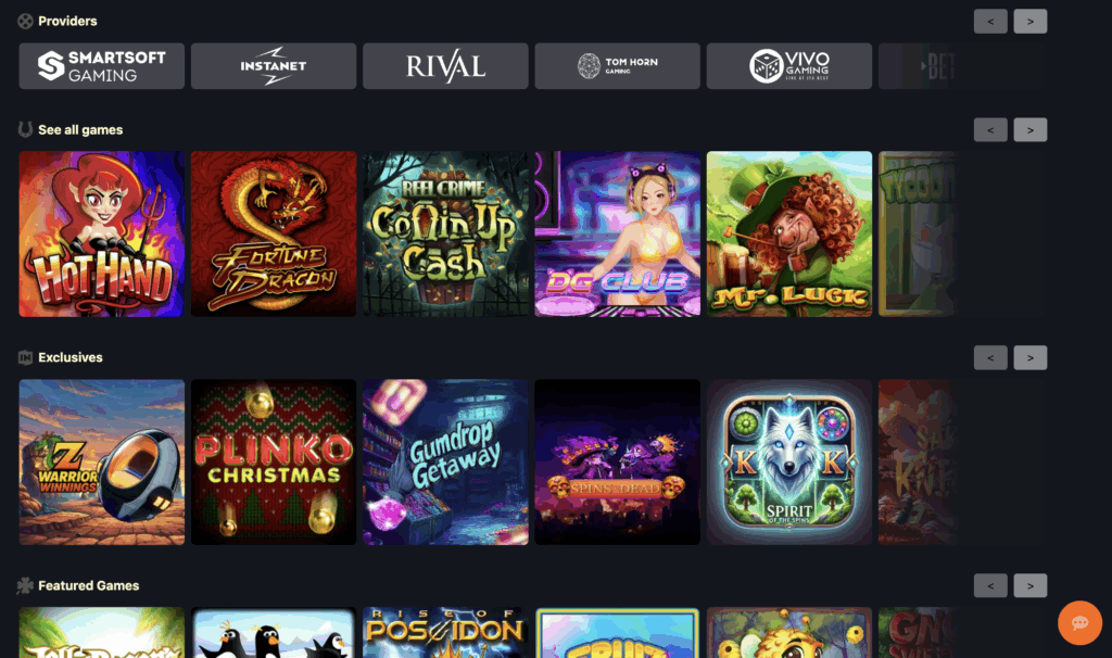 The casino got over 3000 games from top providers like Pragmatic Play and Evolution Gaming. Navigation is smooth, dark theme looks modern and everything loads fast even on mobile. They accept crypto payments which process way faster than traditional methods, usually within 24 hours.